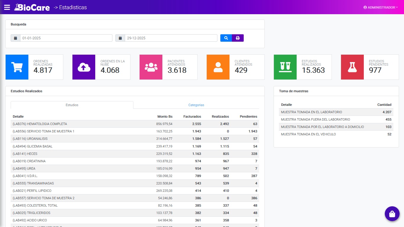 Abarcando desde la generación de órdenes hasta la entrega final de los resultados, optimizando tanto los procesos administrativos como los analíticos.